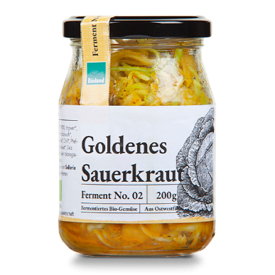 Das Goldene Sauerkraut setzt Eurem Essen die Krone auf. Dank seiner königlichen Kombination aus Kurkuma, Chili, Ingwer und Weißkohl schafft dieses saure Gold die kulinarische Integration zweier Welten: ob deutsch oder asiatisch, das goldene Sauerkraut glänzt in beiden Küchen. Als erfrischend scharfes Topping für eine Kürbissuppe oder als natürlicher Geschmacksverstärker für Currys.